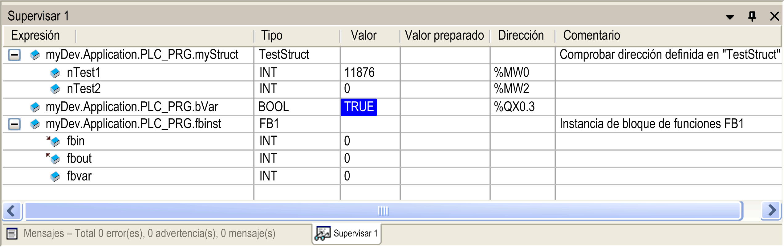 Consulte el capítulo Creación de una lista de supervisión, donde se explica cómo configurar una lista de supervisión y cómo manejar la estructura en caso de variables estructuradas.