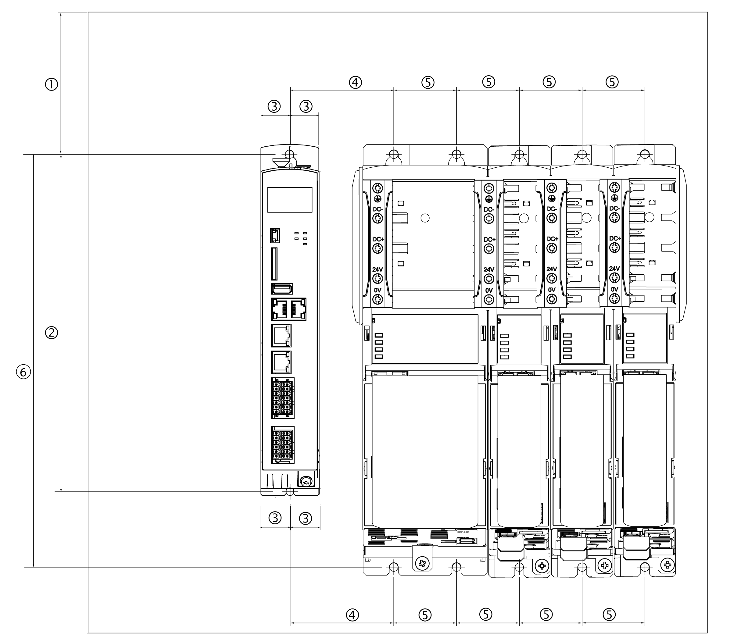Distancias requeridas en el armario eléctrico para el PacDrive LMC Eco, Lexium 62 Power Supply, Lexium 62 Servo Drive:
