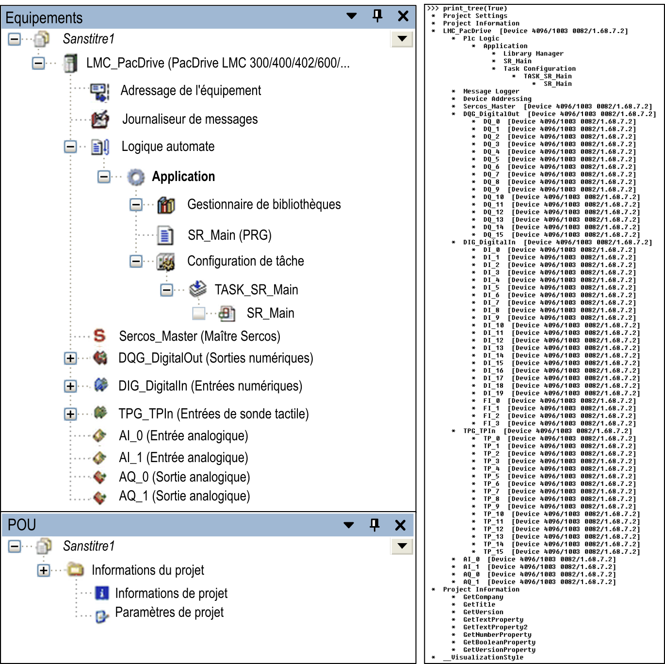 La principale difficulté lors de la rédaction de scripts réside dans le mappage de la documentation détaillée de l'API Python de EcoStruxure Machine Expert sur les objets appropriés pour appeler les procédures.
