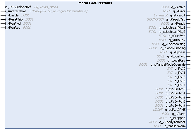 Le bloc fonction MotorTwoDirections permet de gérer un moteur dans deux sens (avant et arrière).