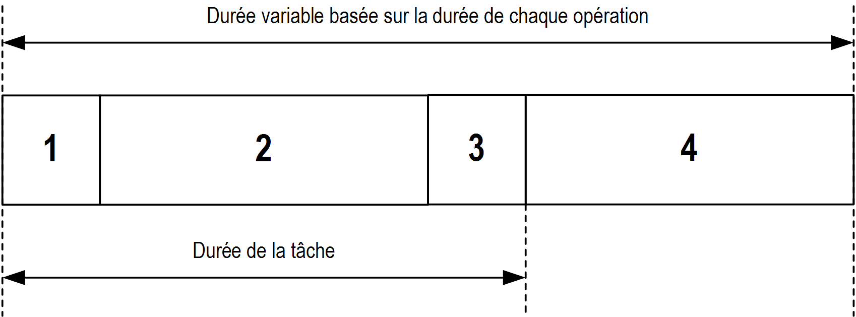 Une tâche exécutée librement n'a pas de durée fixe. En mode d'exécution libre, chaque scrutation de tâche démarre après l'achèvement de la scrutation précédente et après une courte période de traitement système. Chaque type de tâche exécutée librement s'exécute comme suit :