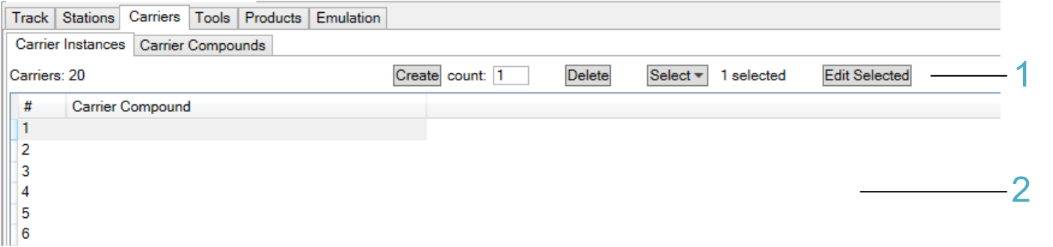 Enter the number of carriers to be created in the count field and click the Create button. Result: The carrier instances are displayed in the table view. |