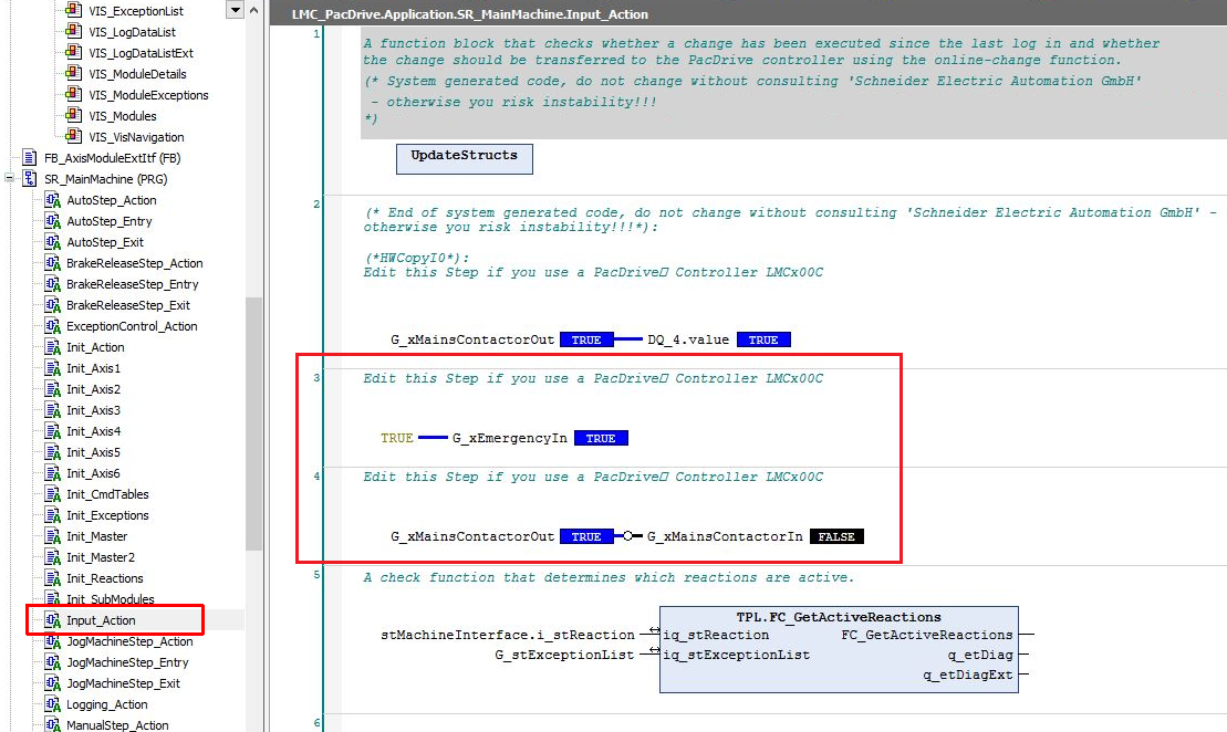 Edit step 3 and 4 of the SR_MainMachine.Input_Action section as shown in the following figure. ![]() |