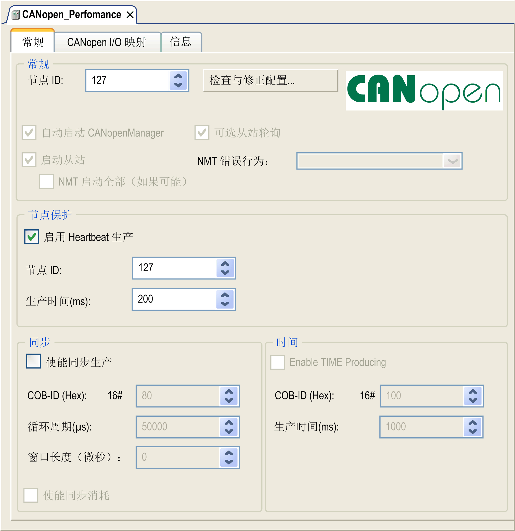 如果在 选项卡的 子选项卡中取消选中选项,则会自动从程序中删除 CAN0_Sync 任务。