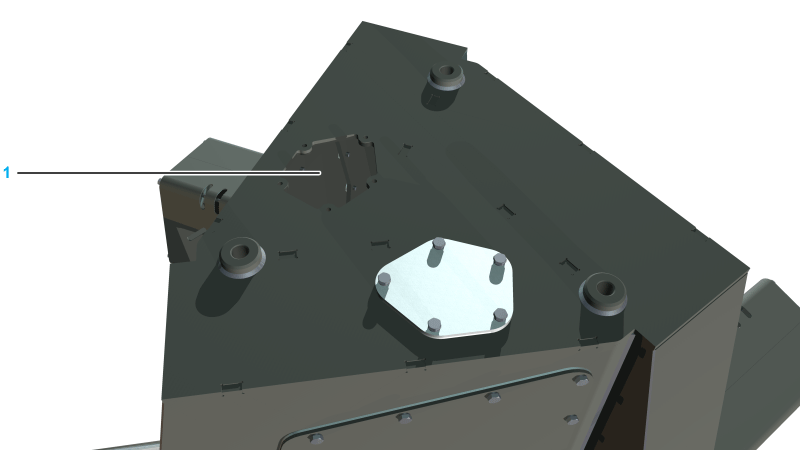 Feed the hybrid cable from the Lexium 62 Connection Module or from another Lexium 62 Distribution Box through the unclosed aperture (1) on the upper side of the housing. ![]() |