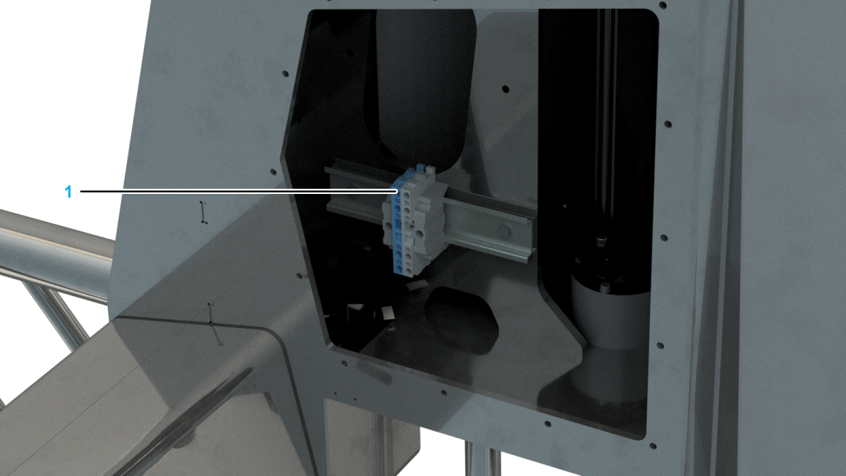 Feed the hybrid cable with a minimum cable length of 0.5 m (19.7 in) from the aperture to the connection point of the internal Lexium 62 Distribution Box (2). ![]()