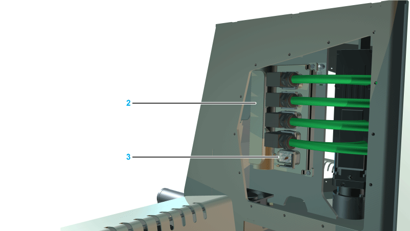 Verify the correct routing and fastening of the cables to help prevent any collision of cables and moving parts. |