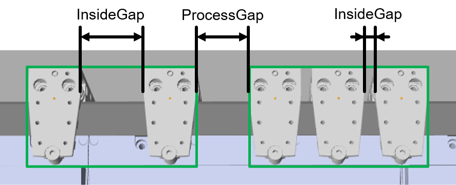 der Abstand zwischen den Gruppen (Prozessabstand): 50 mm