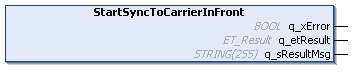 As a precondition for calling the method StartSyncToCarrierInFront, both carriers must be in standstill. The value of the parameter Carrier.RefVelocity must be 0. For more information on the carrier object and the parameter RefVelocity within the user function MovementData, refer to the Lexium™ MC multi carrier Device Objects and Parameters Guide.