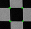 Klicken Sie auf .Ergebnis: Wenn die Kalibrierpunkte von der Kamera erkannt werden, wird die aktualisiert und es erscheinen grüne Punkte an den Ecken der Kacheln des Schachbretts.