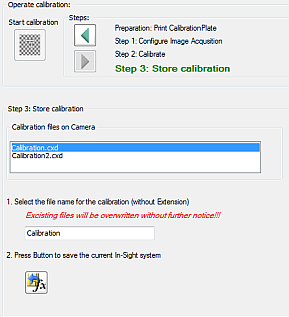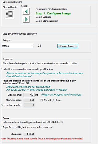 Klicken Sie nach dem Kalibrieren der Kamera auf , um zum Dialog zu gelangen.