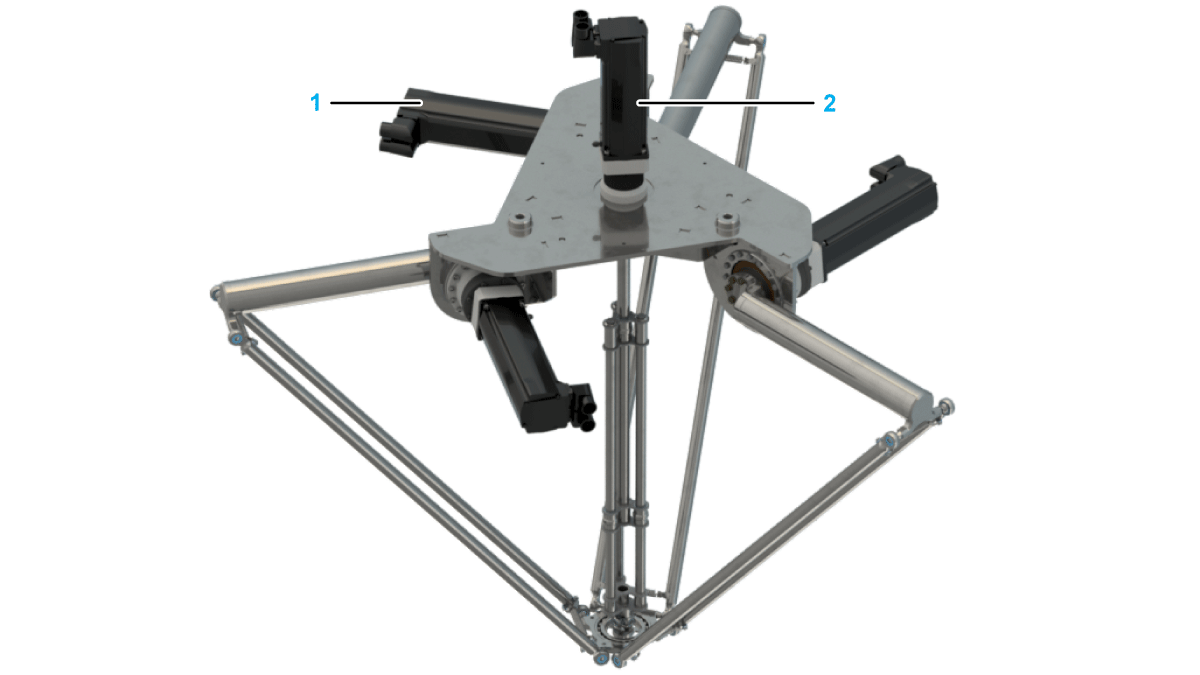 Couple the DC buses of the servo amplifiers so that braking motors can feed back their power to the accelerating motors in the case of an on-path stop of the robot. Due to the coupling of the DC buses, the existing energy suffices in many cases for an on-path stop of the robot. In case of a power outage of the 24 Vdc supply this backfeeding measure does not have any effect. For more information, see Lexium 52 Hardware Guide or Lexium 62 Hardware Guide.