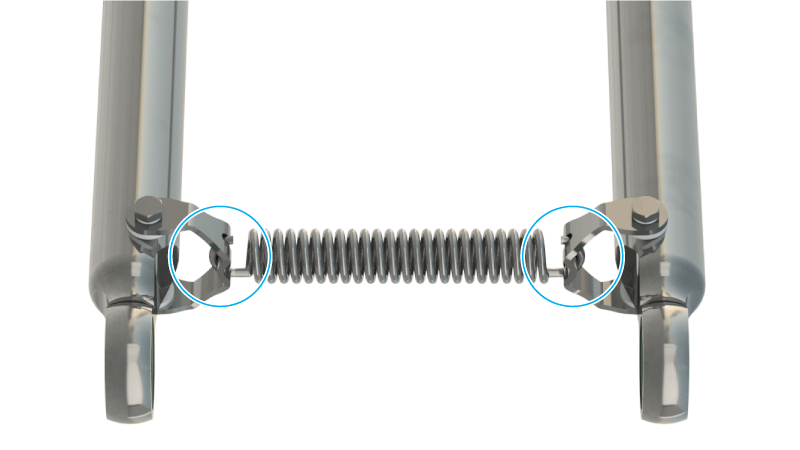 With the open side of the eye, join the spring to the respective spring bracket. |