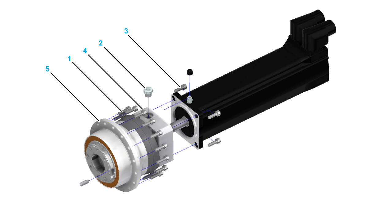 Attach the motor/gearbox combination in the orientation specified to the robot housing. Tightening torque: