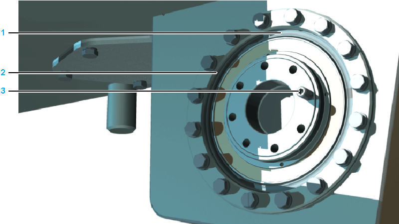 Remove the bolts (1) by means of which the gearbox is bolted to the robot housing.