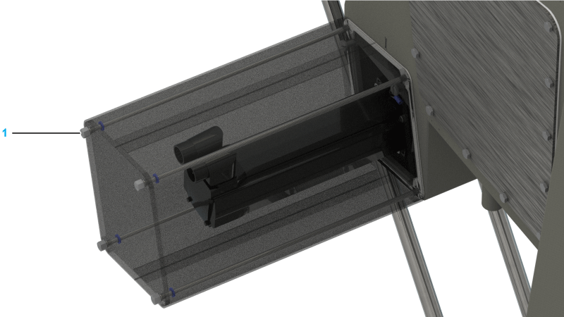 Verify the position of the captive washers (1). The captive washers should be located in the rear of the motor cover (2) on the threaded rods (3).