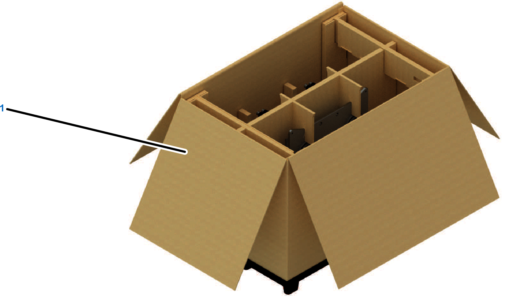 Open the outer carton (1) on the top side and open the corrosion protection bag (not shown in graphic).