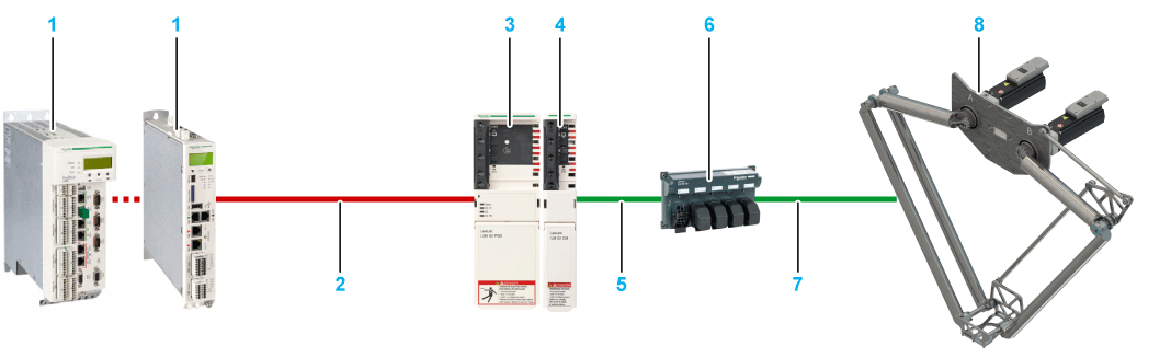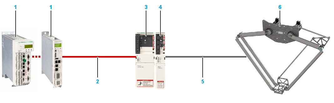 The following figure presents an example of a system setup for one Lexium T robot with ILM motors. At a minimum, these are the equipments required to achieve performances described in this guide.