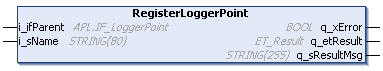 is defined by the inputThe input i_ifParent specifies the parent logger point under which the logger point for the function block FB_TrackCalibration must be registered in the logger point tree.