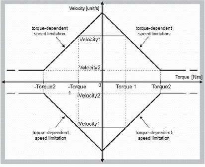 Limit the speed of the axis depending on the torque of the motor shaft (torque-dependent speed limitation). This is required to seal bottles, for example.