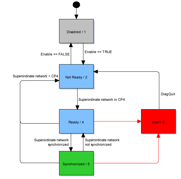 Waiting until the superordinate network is operational (communication phase 4) and the encoder data is exchanged.  |