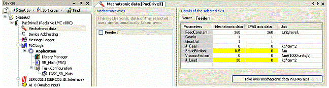 [Take over mechatronic data to EPAS axis] button |