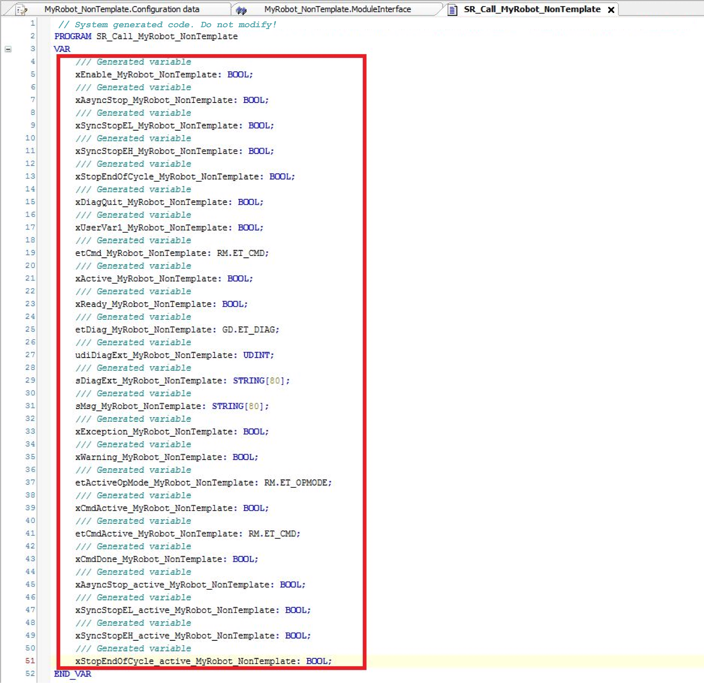 option, the three following elements are added to your project:After the automatic generation procedure by the system, the project can be build and downloaded to the controller.