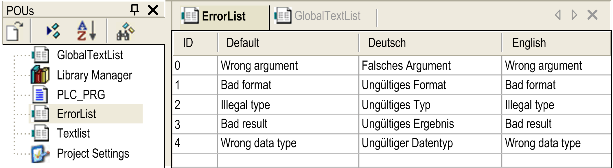 is a special text list where the identifiers for the particular text entries are handled implicitly and are not editable. The list can be exported, edited externally and then reimported.
