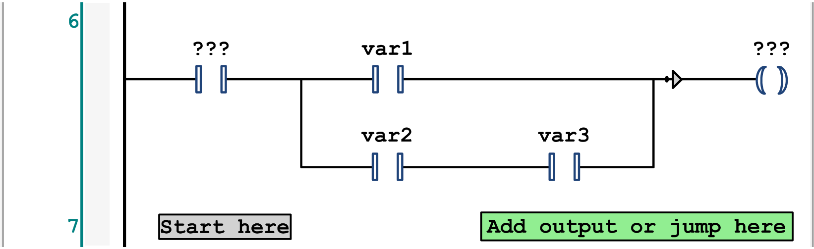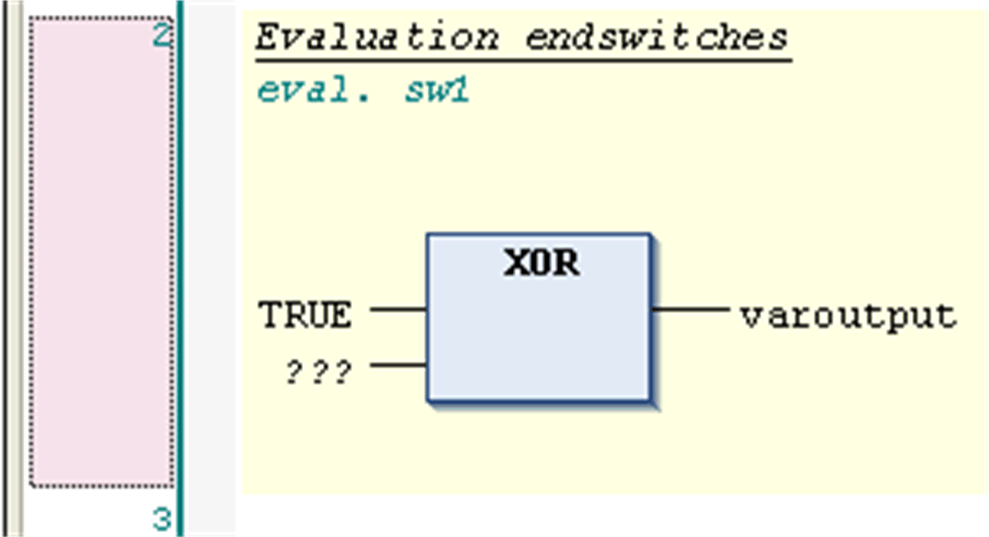 In the left image, the possible cursor positions are marked by a red-frame. The right image shows a box with the cursor being placed in the AND field. Keep in mind the possibility to enter addresses instead of variable names if configured appropriately in the dialog box.