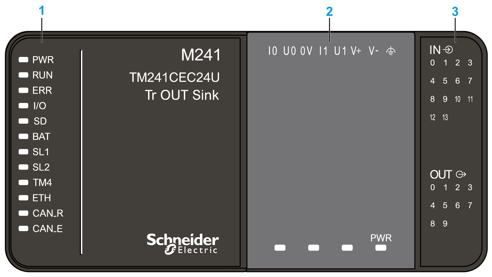 1 For more information about the controller state description, refer to the M241 Logic Controller - Programming Guide.