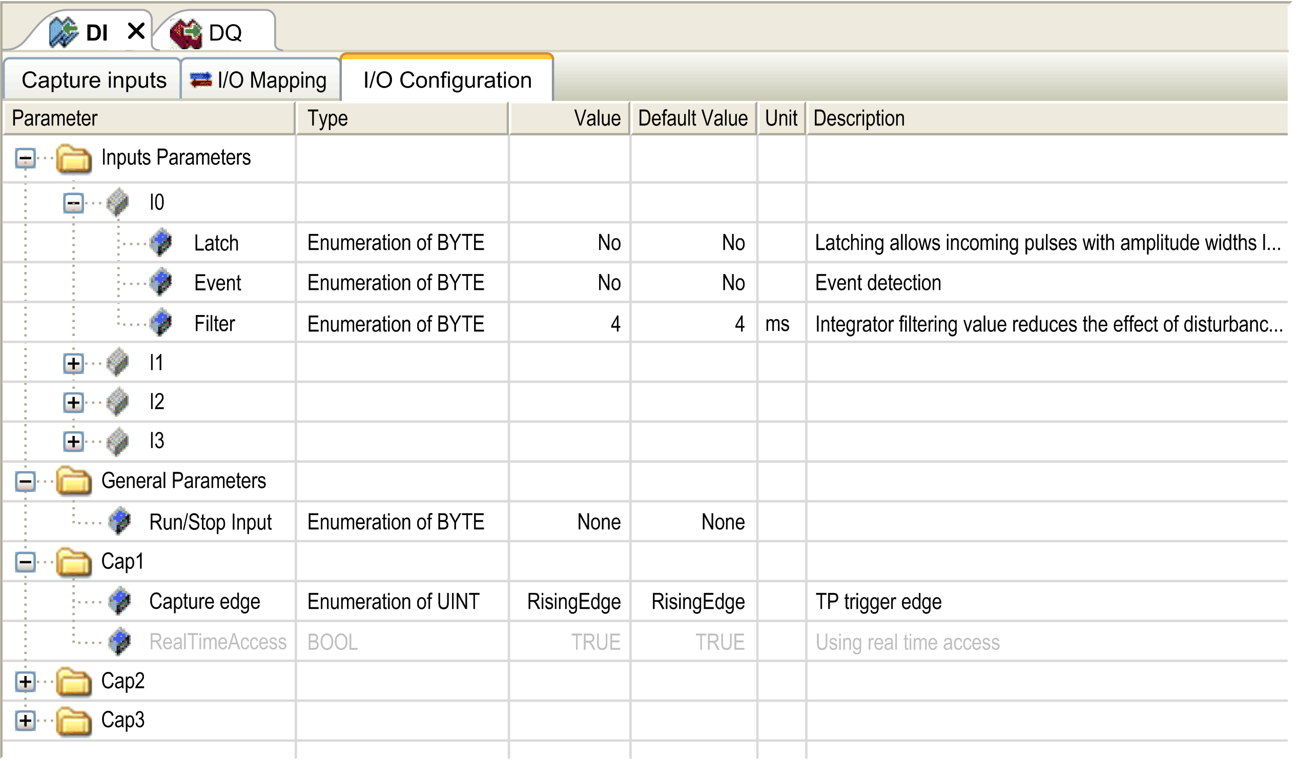 | No* Rising edge Falling edge Both edges | Event detection | Available if disabled. When is selected, and the input state is TRUE before the controller is powered on, the first falling edge is ignored. |