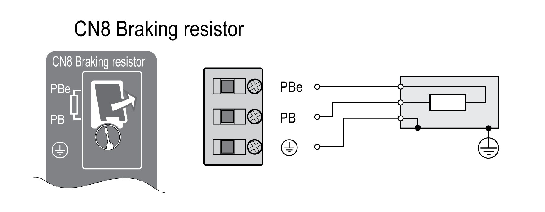 Conecte a tierra la conexión PE (tierra) de la resistencia de frenado.