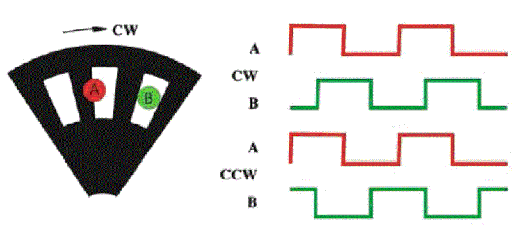An incremental encoder basically comprises a round disk with a recess of the same size and web of the same size. These are evaluated using photo elements.