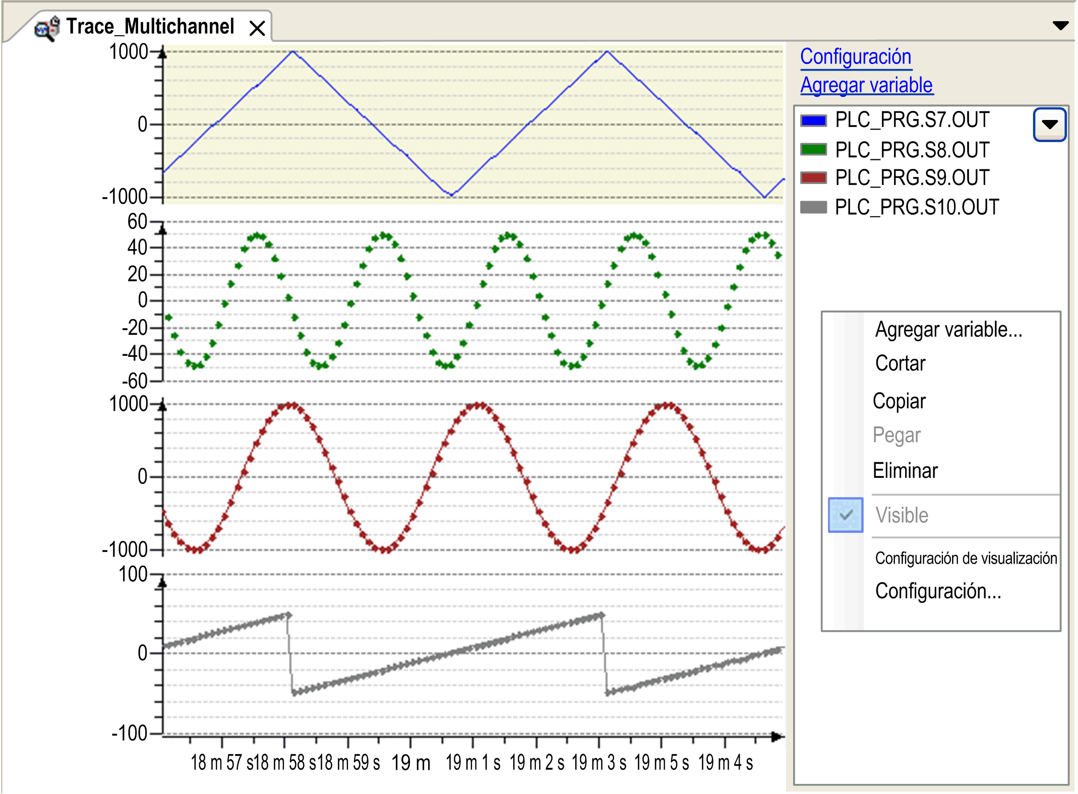 , seleccione el nodo , haga clic en el botón del signo más de color verde y ejecute el comando Haga doble clic en el nodo en el para abrir el editor de trazas. Los objetos y muestran datos de traza en uno o más diagramas.Un nodo