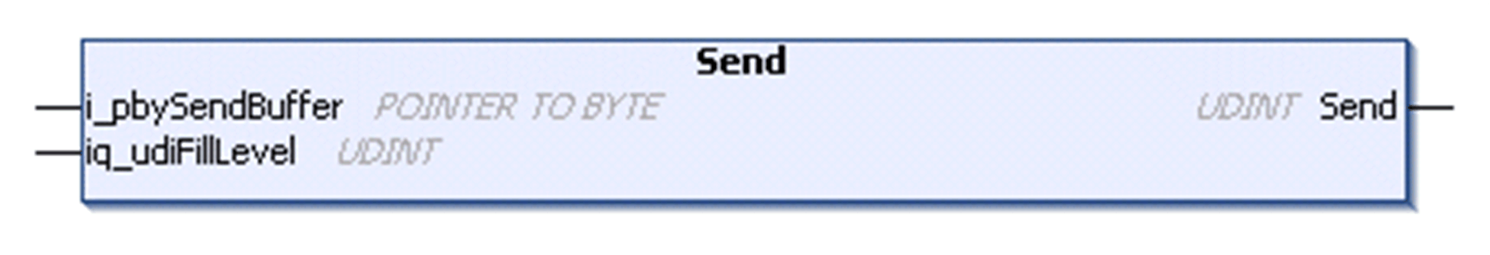 Los métodos de envío de datos, proporcionados por los bloques de funciones FB_TCPClient/FB_TCPClient2 y FB_TCPServer/FB_TCPServer2 de esta biblioteca, ofrecen el parámetro de entrada/salida iq_udiFillLevel. Este parámetro determina el número de bytes del búfer que aún no se han enviado. En cada ejecución de la función el valor se actualiza quitando del valor original el número de bytes enviados. Además, los bytes que quedan en el búfer se copian en el área superior de este (los datos se envían a partir de la dirección de inicio i_pbySendBuffer).