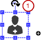 Example: In runtime mode, the element rotates about the point of rotation specified in Center according to the value of the variable. In addition, the alignment of the element rotates according to the coordinate system of the visualization. Increasing the value in the code rotates clockwise.