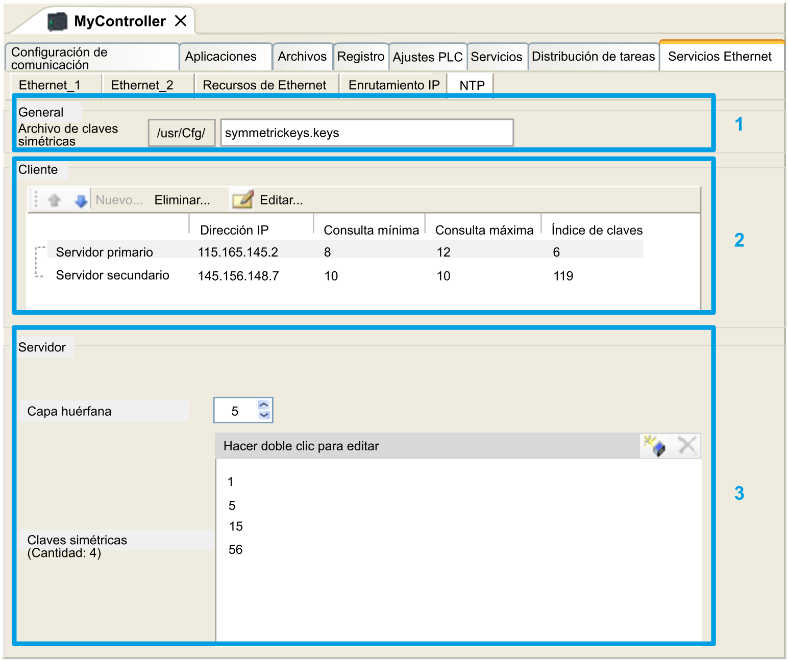 Nombre del archivo de claves simétricas. Editable. Se puede dejar en blanco si no se define ningún índice de clave.