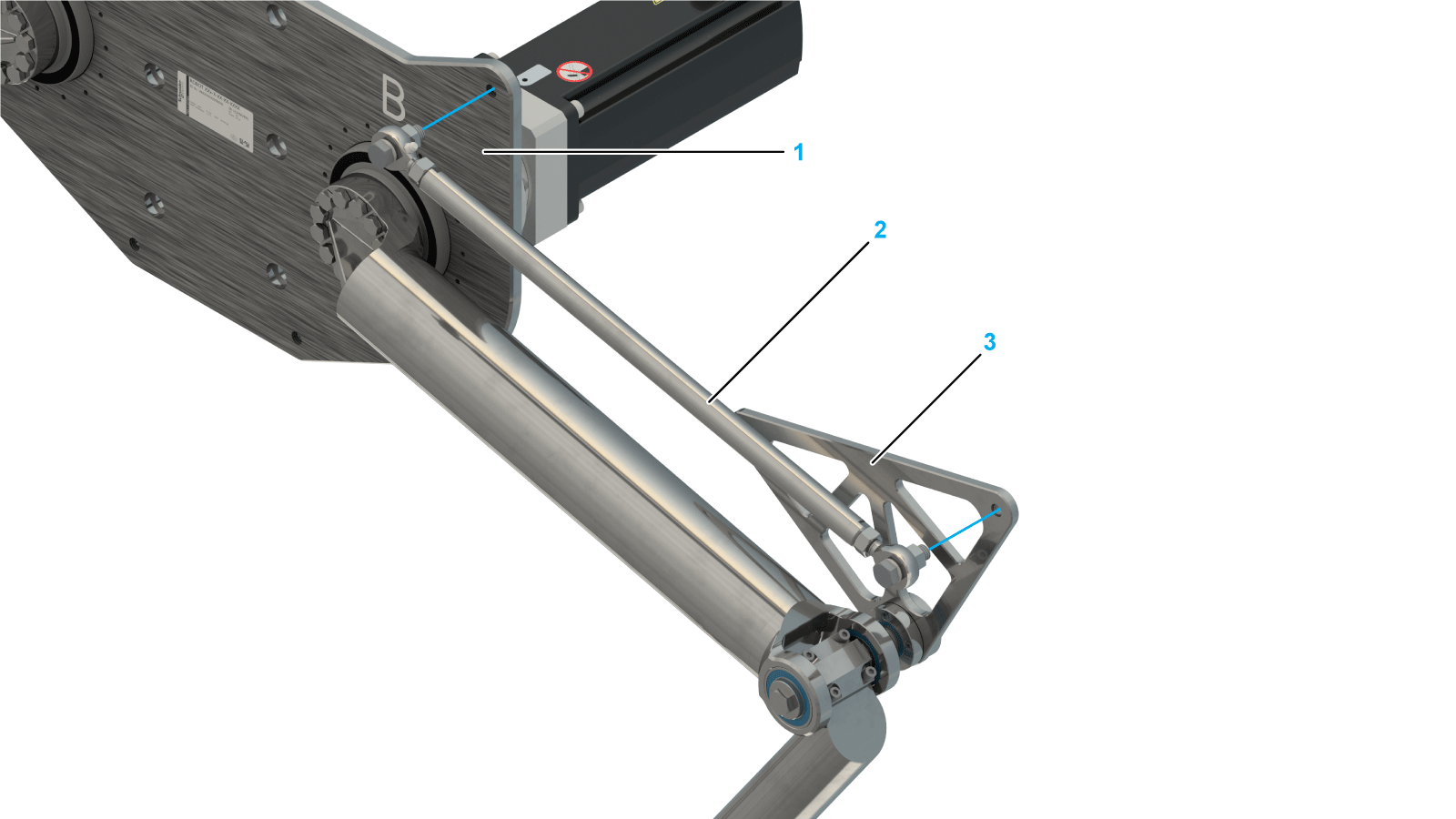 Fasten one end of the long rod (2) to the lever parallel linkage (1) and the other end to the parallel plate (3). Tightening torque: 56 Nm (496 lbf-in) ![]() |