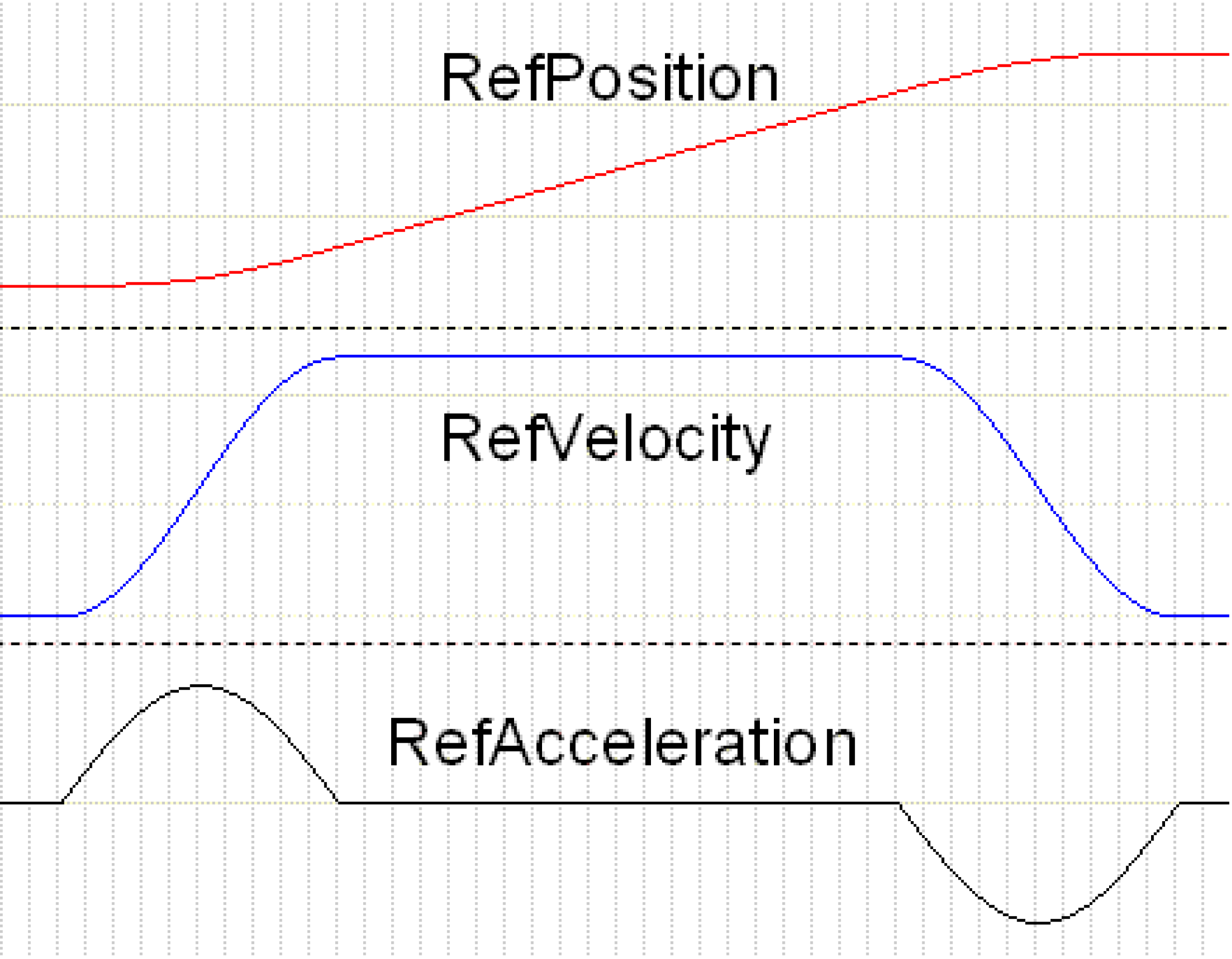 The parameter ST_Synchron.etLawOfMotion determines by means of which law of motion the trains follow the master axis. The following laws of motion have been implemented.
