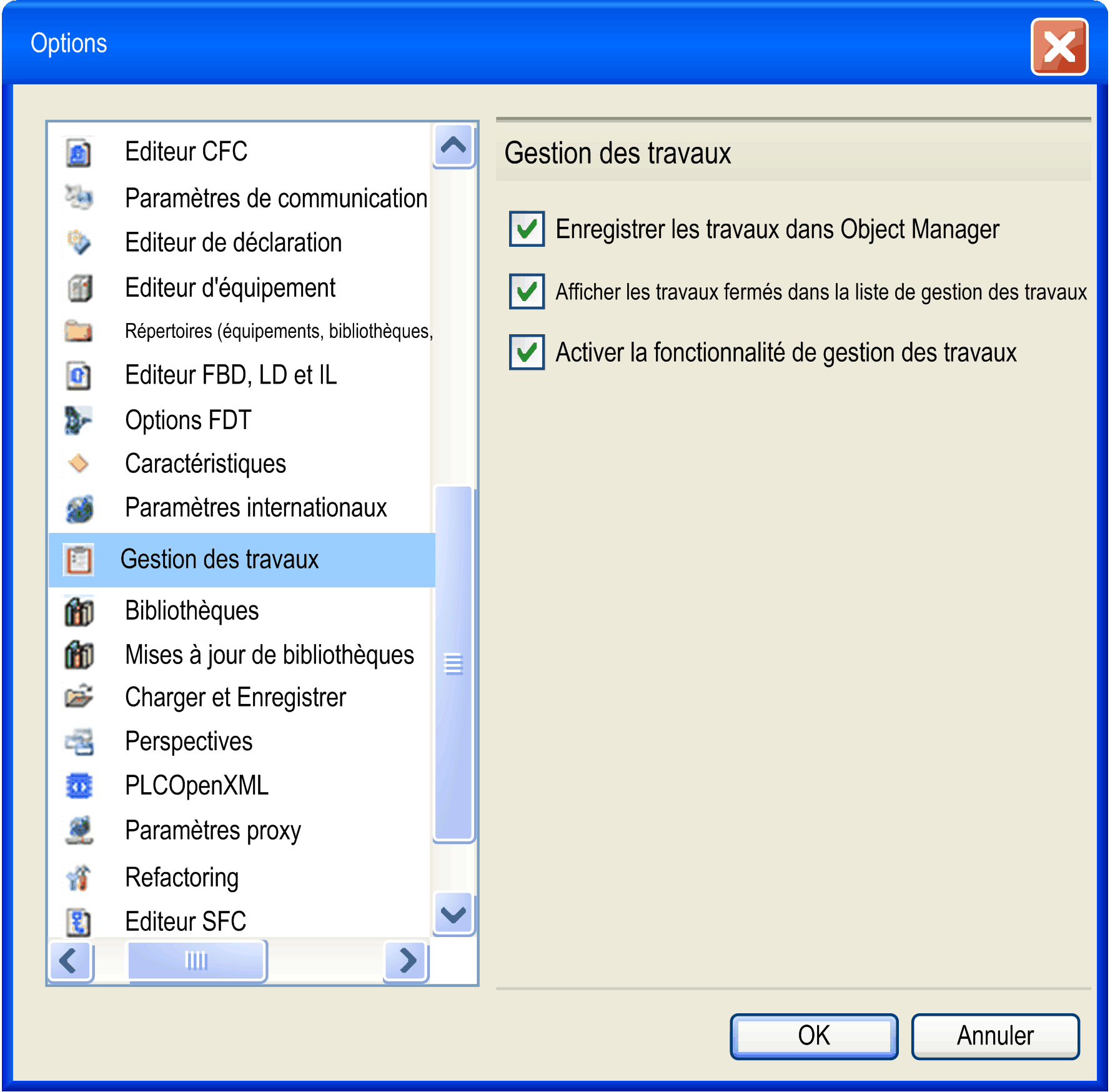 Si cette option est activée, les travaux en état Vue de gestion des travaux. sont affichés dans la |