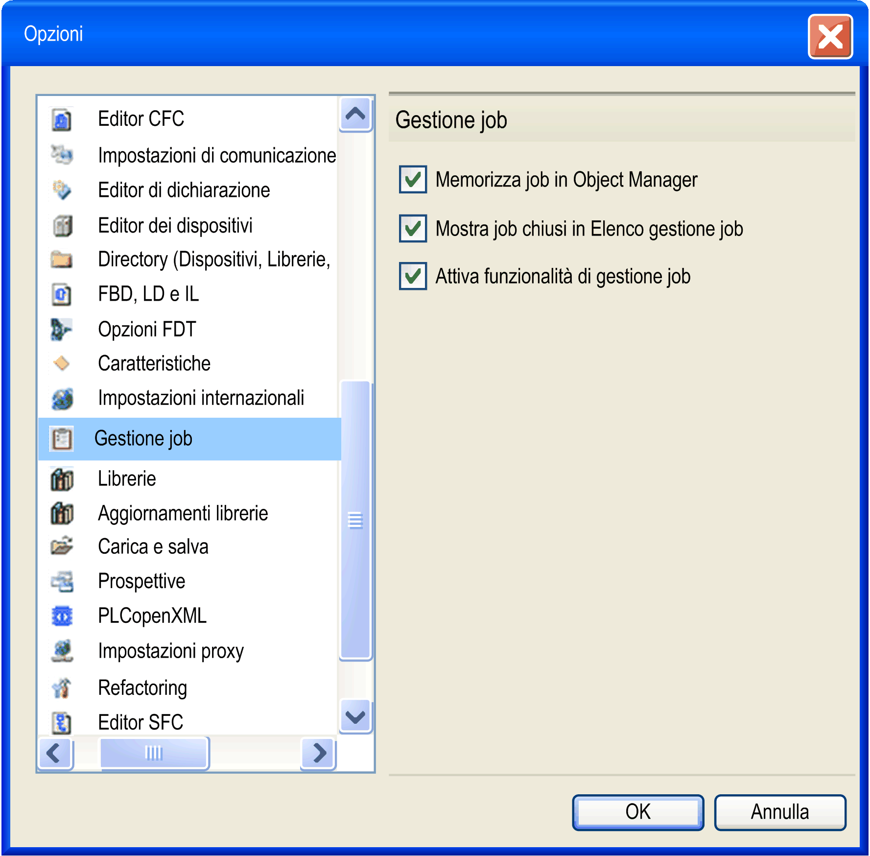 la finestra di dialogo → presenta le impostazioni che riguardano la funzione Gestine job.