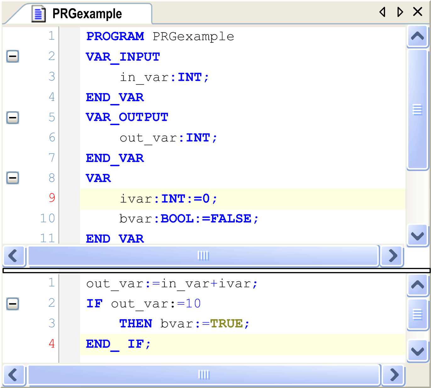Seguono le dichiarazioni delle variabili di ingresso, di uscita e delle variabili del programma. Le variabili di accesso sono disponibili come opzioni.