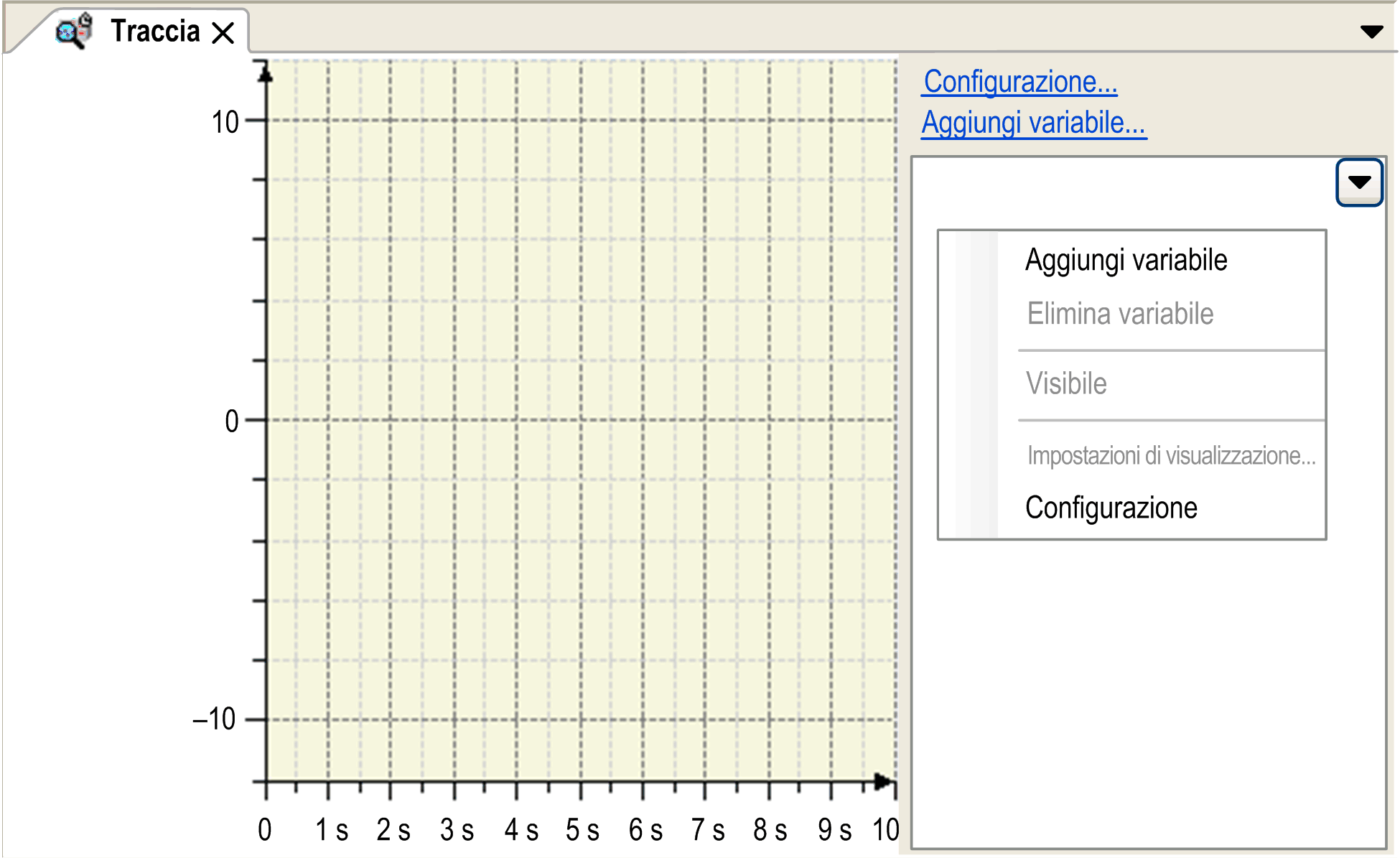 Per iniziare la traccia in modalità online, scaricare la relativa configurazione sul controller con il comando . I grafici delle variabili di traccia vengono visualizzati nella finestra dell'editor di traccia, dove è possibile salvarli in un file esterno. Questo file potrà poi essere ricaricato nell'editor. Vedere anche il capitolo Editor di traccia in modalità online.