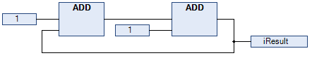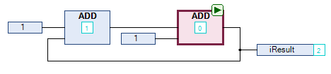 L'ordine cronologico degli elementi nel grafico può essere indicato in EcoStruxure Machine Expert visualizzando temporaneamente l'ordine di esecuzione. Per le reti con feedback, è possibile definire un elemento come punto di partenza nel loop di feedback.