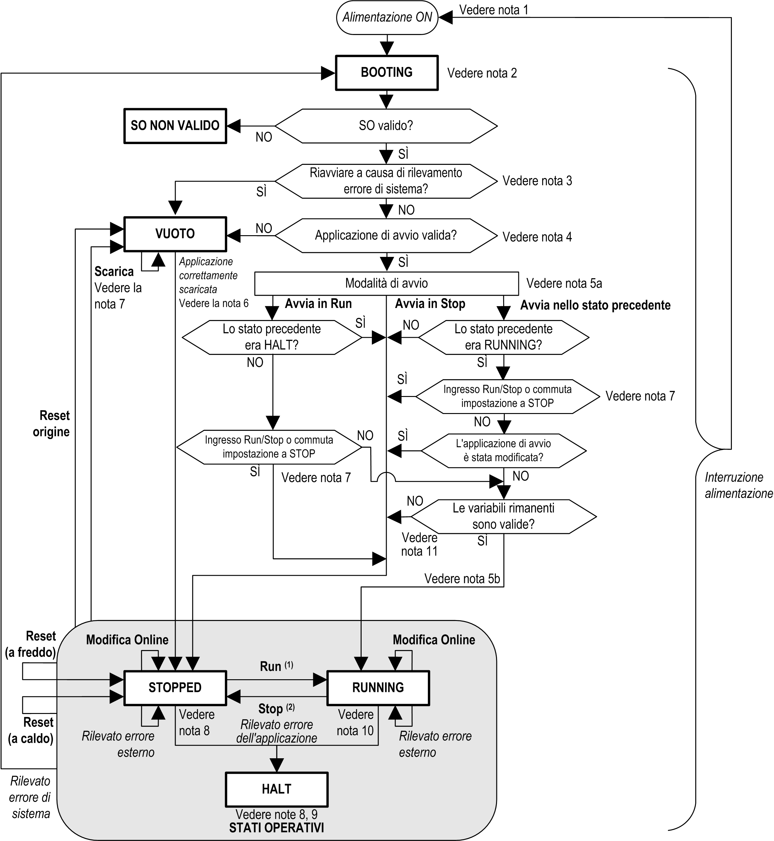 (1) Per informazioni dettagliate sulla transizione di stato da STOPPED a RUNNING, fare riferimento acomando RUN.