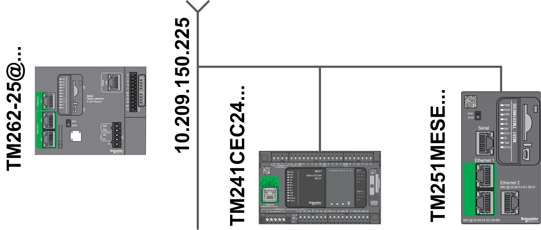 此功能块的执行会迫使所连接的 M251 逻辑控制器上的 LED 闪烁大约 10 秒。