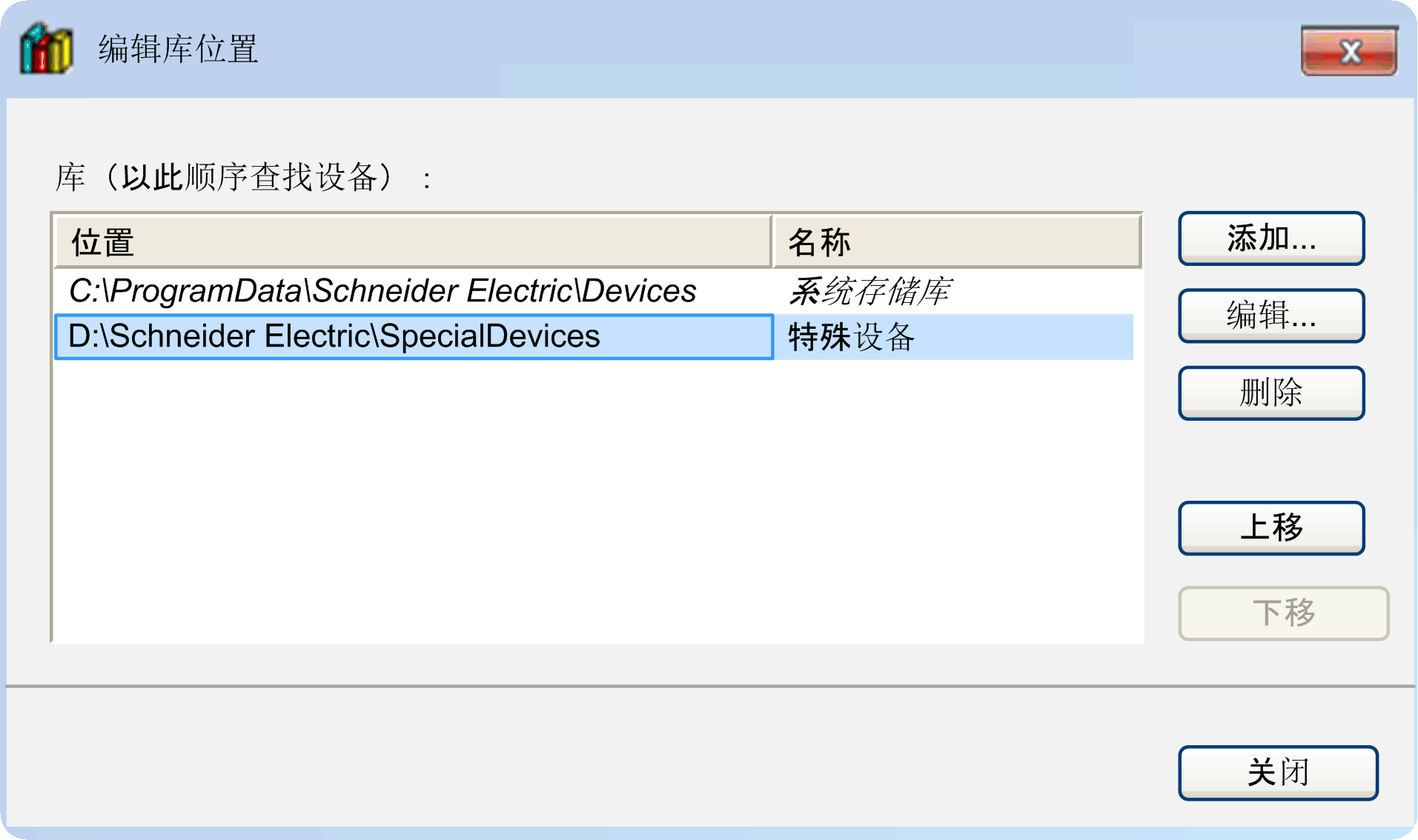 和 按钮可更改搜索顺序。单击 按钮可打开用于定义新位置的对话框。若要删除存储库位置,请单击