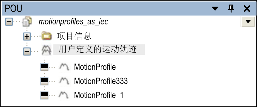 在 POU 树中,通过用户定义的运动轨迹节点来定义。 |