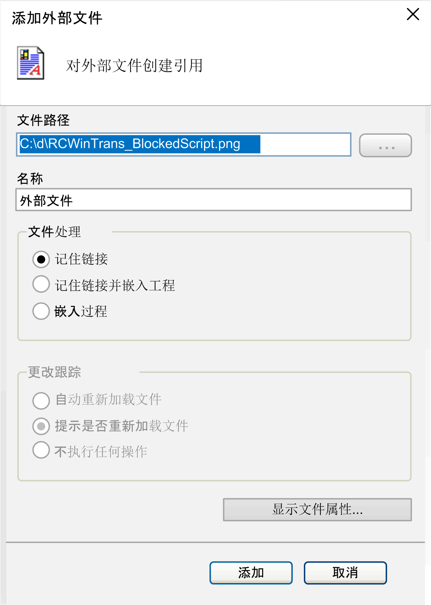 如果外部文件与项目链接,则可额外选择其中一个选项: