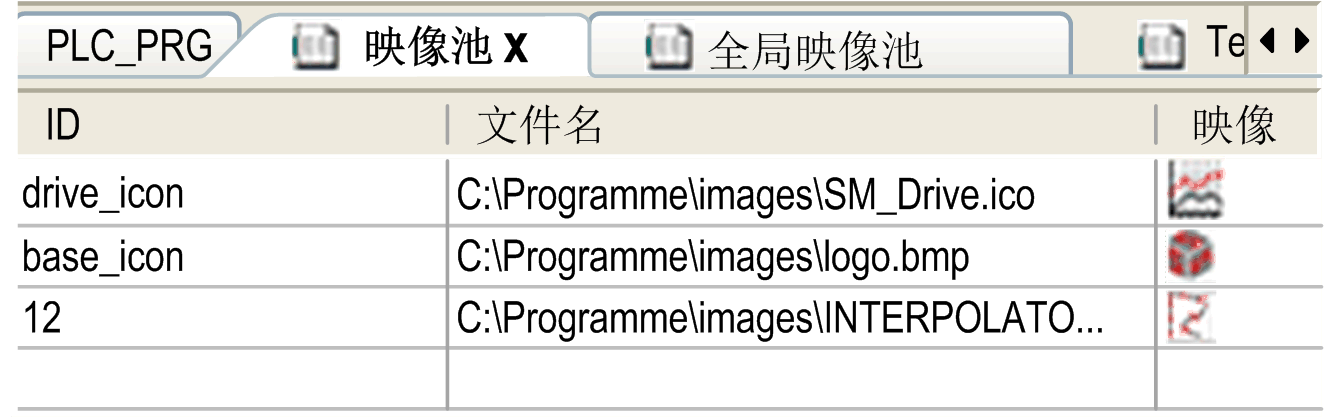 映像池是定义每个映像的文件路径、预览以及字符串 ID 的表格。通过指定 ID 以及为了访问唯一目标而指定映像文件名称,可引用映像,例如在可视化中插入时使用(有关映像元素属性配置的信息,请参阅使用在映像池中管理的映像)。
